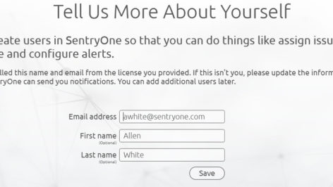 At this point, I switch to the workstation where I'll install the client. I only need to copy the SentryOne install program there and run it. I opt to install every component except the monitoring service, specify WS16SQL2 as the server hosting the SentryOne repository database, and when it's done, indicate that I want to run the S1 client. When it opens, it displays my name and email address (which it got from the license key I've already inserted into the dbo.License table), which I verify.