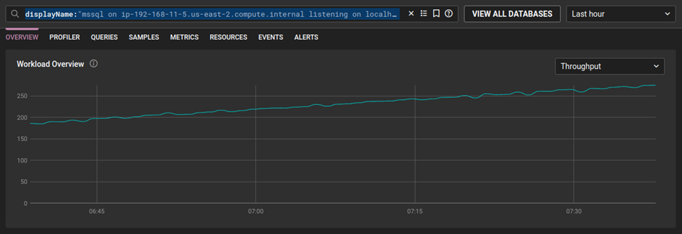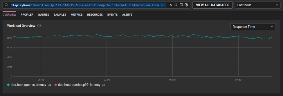 - Use the Databases area overview to review the metrics from your monitored databases. These metrics display database response time, throughput, error rate, and workload information.