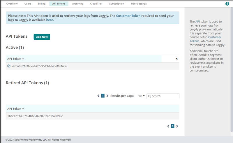 Note: If you previously created an API token in your SolarWinds Observability account, then you can reuse your existing API token.