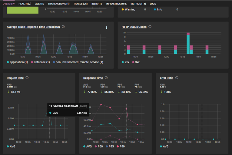 - Networking visibility: Tracks network latency and identifies potential network congestion or routing issues impacting application performance.