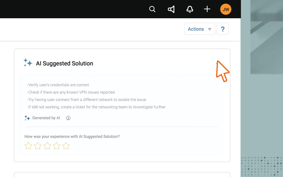 Suggested solutions and draft responses can help agents reduce MTTR, while available ticket summaries facilitate faster resolution of future incidents. This also contributes to knowledge building and enhances the responses generated by generative AI.