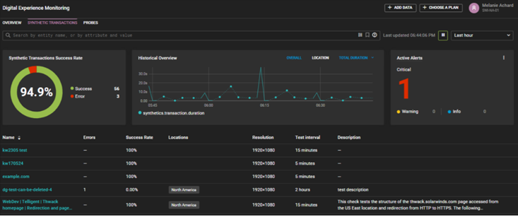 If you are a current SolarWinds Observability user, select a website entity and select Add Synthetic Transaction to begin setting up transaction monitoring for yourself. If you are not a SolarWinds Observability user, you can see the power of SolarWinds Observability Digital Experience Monitoring in our interactive demo environment or by starting your free trial of SolarWinds Observability.