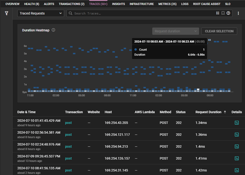 Trace duration heatmap view in SolarWinds Observability