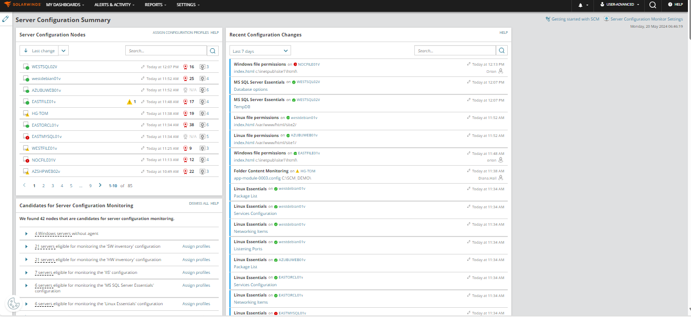 Systems and application configurations change constantly. Knowing when these changes took place, what changed, and who made the change without a change monitoring tool is nearly impossible. Server configuration monitoring in Hybrid Cloud Observability is designed to alert you to system and application changes so you know first. Agent-based monitoring allows for near real-time awareness and the ability to track changes made offline.