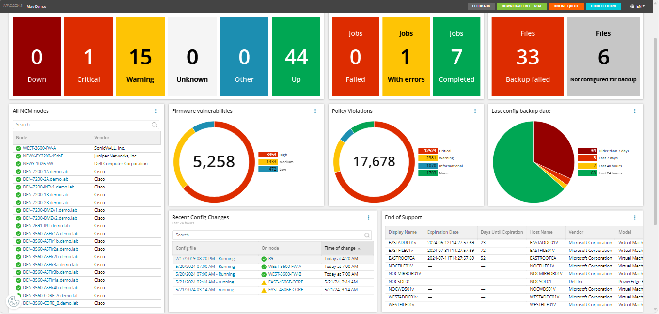 If you have a vulnerability scanner such as Nessus, Rapid7, or Qualys - SEM can parse event logs from these sources to alert on detected vulnerabilities and correlate activity. Network configuration management in Hybrid Cloud Observability can help to identify risks to network security and reliability by detecting potential vulnerabilities in Cisco ASA and IOS based devices via integration with the National Vulnerability Database. You can even update the firmware on a range of network devices to remediate known vulnerabilities.