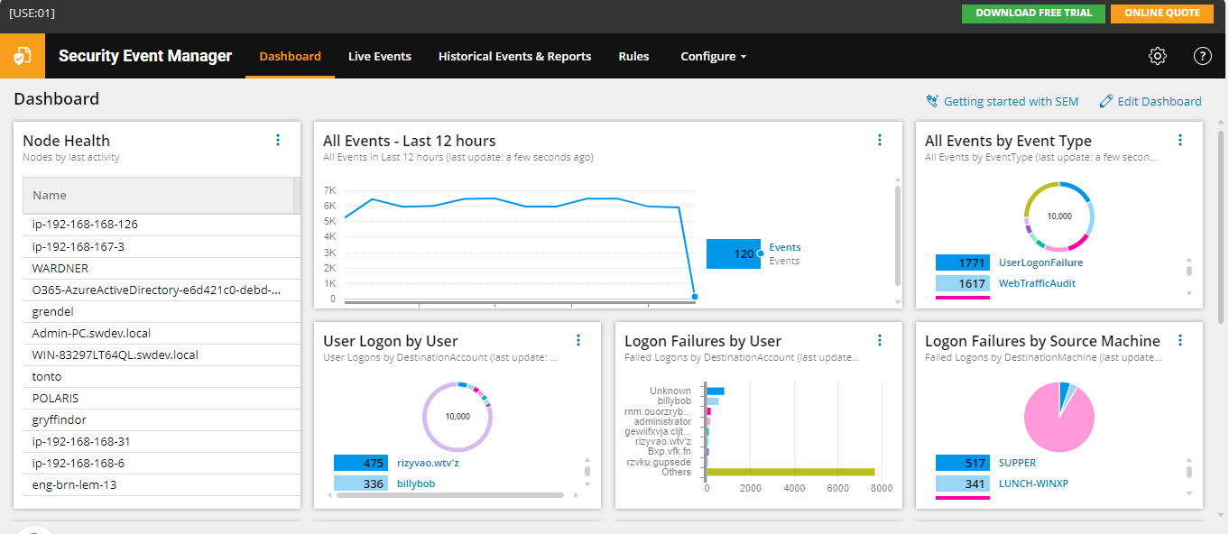 As you've probably guessed by the title, this one has Security Information and Event Management (SIEM) written all over it. Collecting and analyzing your audit logs from all the devices on your network can significantly reduce your MTTD (mean time to detection) when an internal or external attack occurs. Collecting logs is only one part of the equation. Analyzing and correlating event logs can help identify suspicious behavior patterns and allow you to respond accordingly. If an attack occurs, your audit logs are like an evidence room. They allow you to assemble the puzzle pieces, understand how the attack occurred, and remediate appropriately. SolarWinds SEM is a powerful SIEM tool with log normalization, correlation, active response, reporting, and more features.