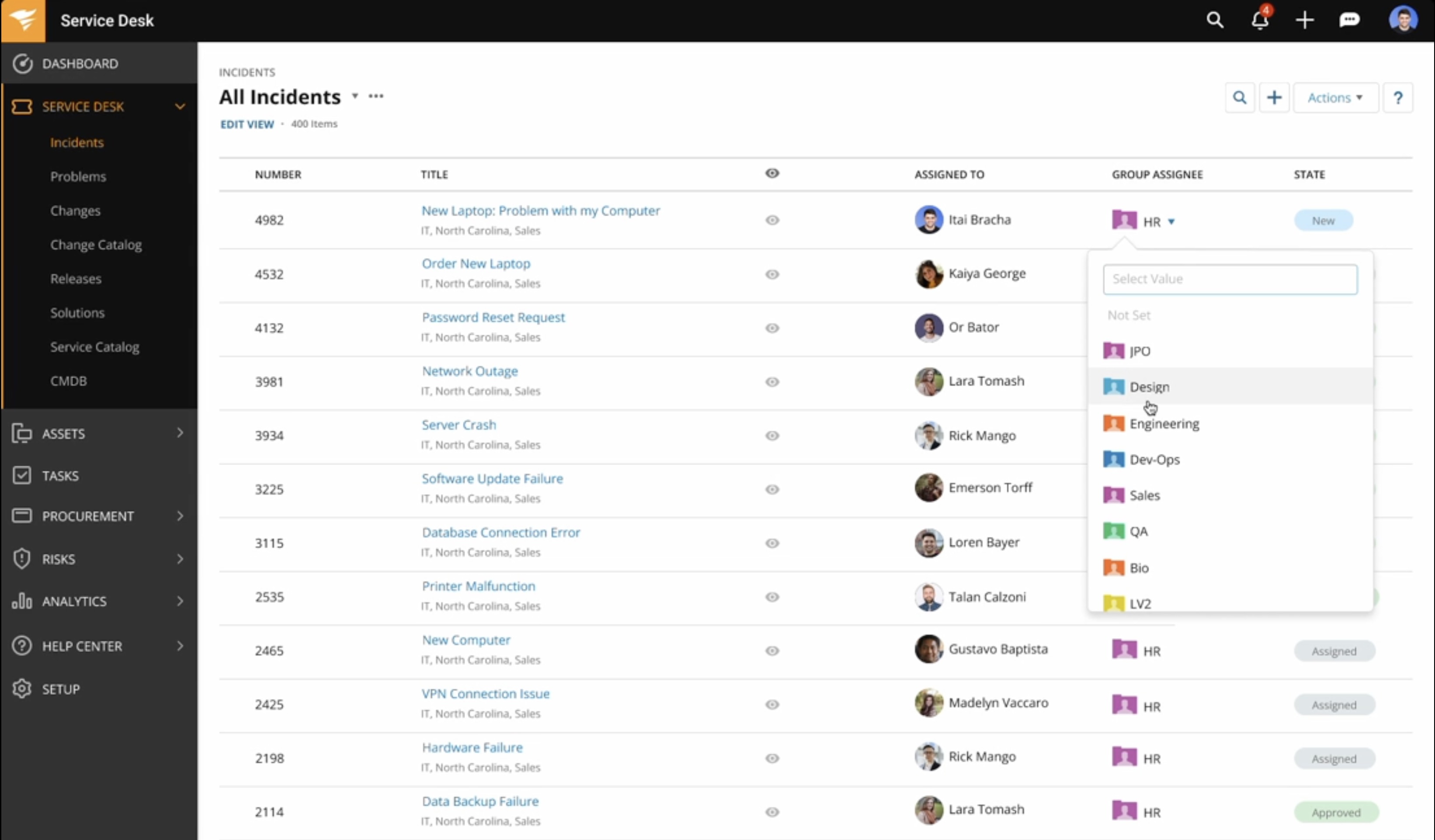 To improve processes and understanding, we’re introducing a new system field called Group Assignment. Incidents, problems, changes, releases, SLA actions, change catalog and service catalog items can all be assigned to a specific group. Agents can be members of one or multiple groups. Reports can be filtered down to accurately report on issues assigned to that particular group. The use of group assignments will promote better routing and automation and will also greatly enhance analytics, allowing leaders to better understand how those teams are performing and any inefficiencies or issues that can be optimized.
