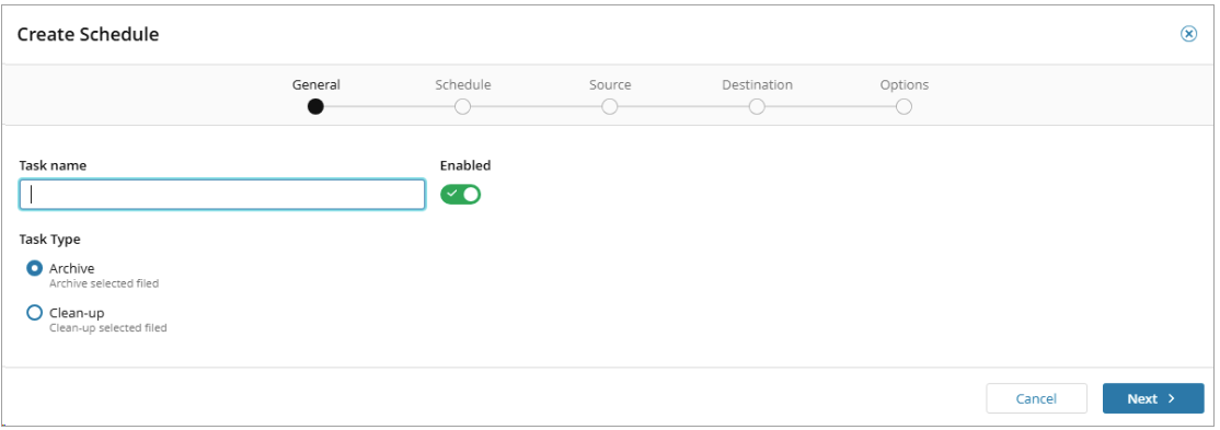 For details, see Create a scheduled task to delete files. - Use an archive task to save disk space and automatically archive files that are no longer needed. For example, you can create a task to archive troubleshooting log files once they are more than a week old. The archive task includes options to compress files, encrypt files, move files to another location, and send notifications. You can schedule the task to run at regular intervals create an automated process.