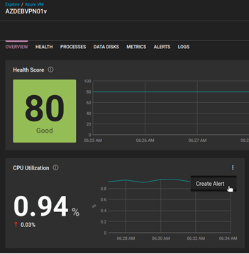Alerts can also be created directly from a dashboard in the infrastructure resources overview for a specific VM.