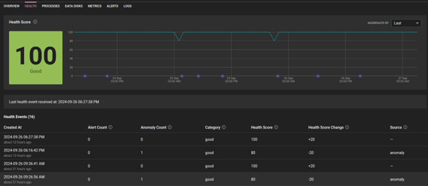 You can drill down to an individual VM to see its Health Score and an overview of several critical metrics.