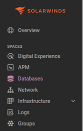 To view these metrics of your PostgreSQL instances in SolarWinds Observability, navigate to the left sidebar to select the Database feature.