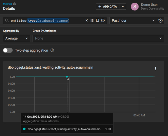 Autovacuum waiting activity metric in the SolarWinds Observability dashboard