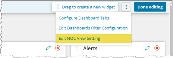 When you edit a Modern Dashboard, you’ll see a new sitting to Edit NOC View Settings.