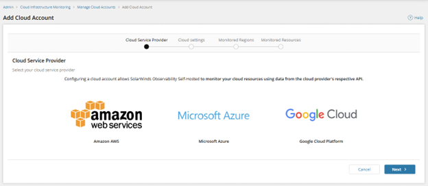 Figure 5: SolarWinds makes it easy to select a Cloud Service Provider.