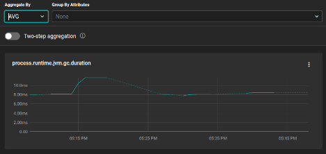 You can click on any individual metric to see a visualization. For example, <a style="background-color:#fff0cf;" href="https://opentelemetry.io/docs/specs/semconv/runtime/jvm-metrics/#metric-jvmgcduration">jvm.gc.duration</a>