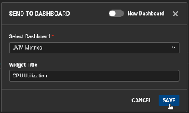 Choose your recently created dashboard from the dropdown list. Specify a name for the widget with your metric. Then, click Save.