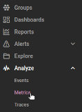 After running your application several times, it's time to confirm that the application is sending telemetry data to SolarWinds Observability SaaS. To do this, log in to your account and navigate to Analyze > Metrics.