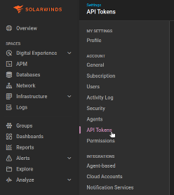 Get SolarWinds Observability SaaS OTel Endpoint and API Token