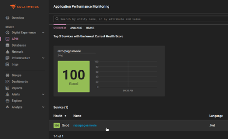 To confirm that your application is successfully sending telemetry data to SolarWinds Observability SaaS, log in to your account and navigate to APM.