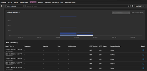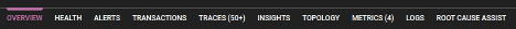Clicking the application brings you to an APM overview page for your application. You’ll see the presence of traces (50+) and metrics (4) just by looking at the top bar nav.