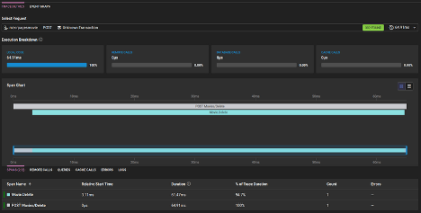 The Traces subpage shows the custom spans that you have instrumented for tracing in your application's Movie model.