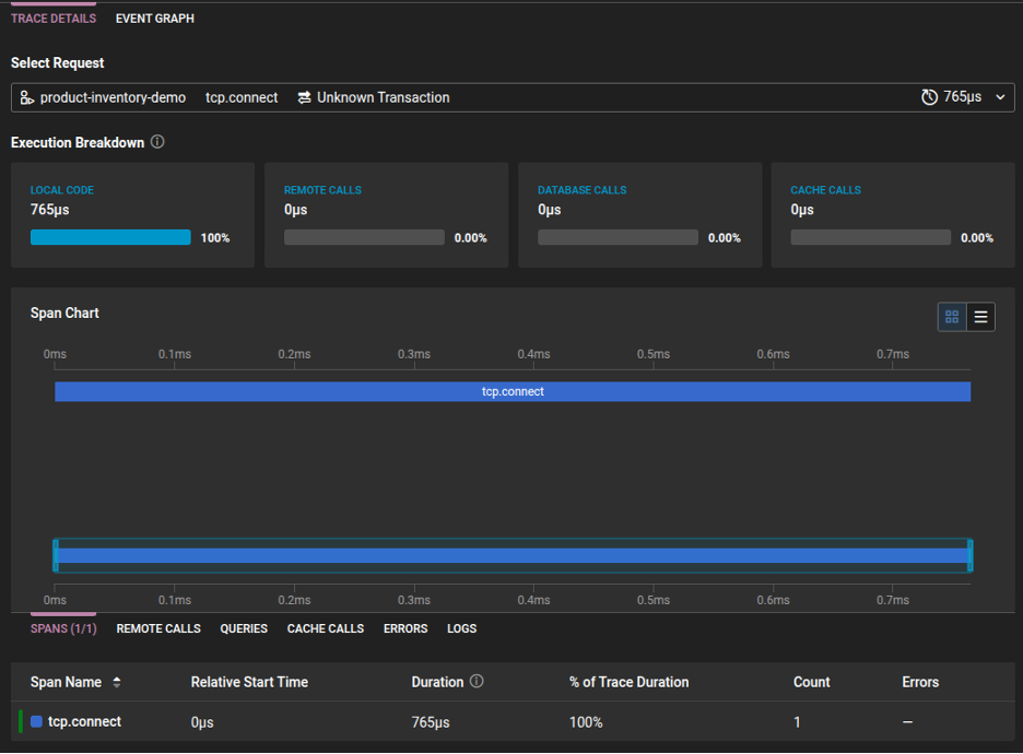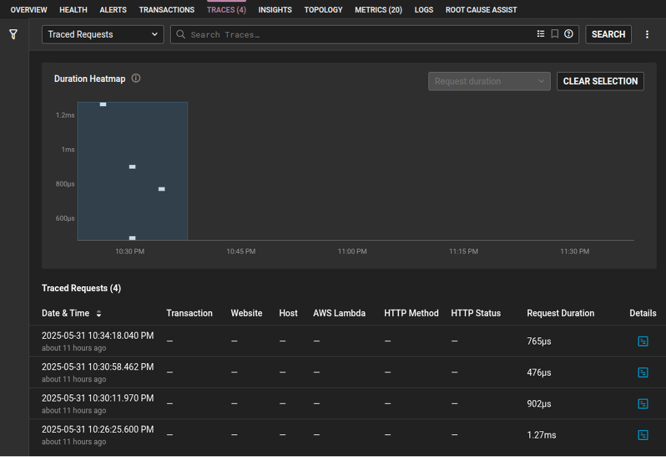 Clicking on the Traces tab shows you traces that were captured by your instrumentation.