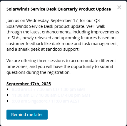 Dark mode is now available in labs for SolarWinds Service Desk! This release introduces a sleek, visually comfortable interface designed to reduce eye strain and support sustained focus throughout the workday.