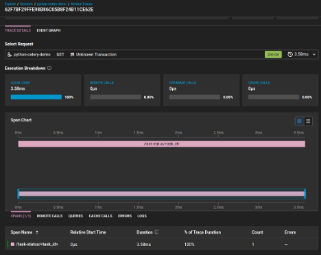 To demonstrate the OpenTelemetry integration, we’ve built a small Python app that uses Celery as the message broker and Redis as the message broker. We’ll also include Flask to simulate a web request that triggers background tasks. Our app will let users submit a task via an HTTP request. Celery will pick it up and simulate a delay before returning a result. You can find the code at this GitHub repository, follow it, and try it out yourself.