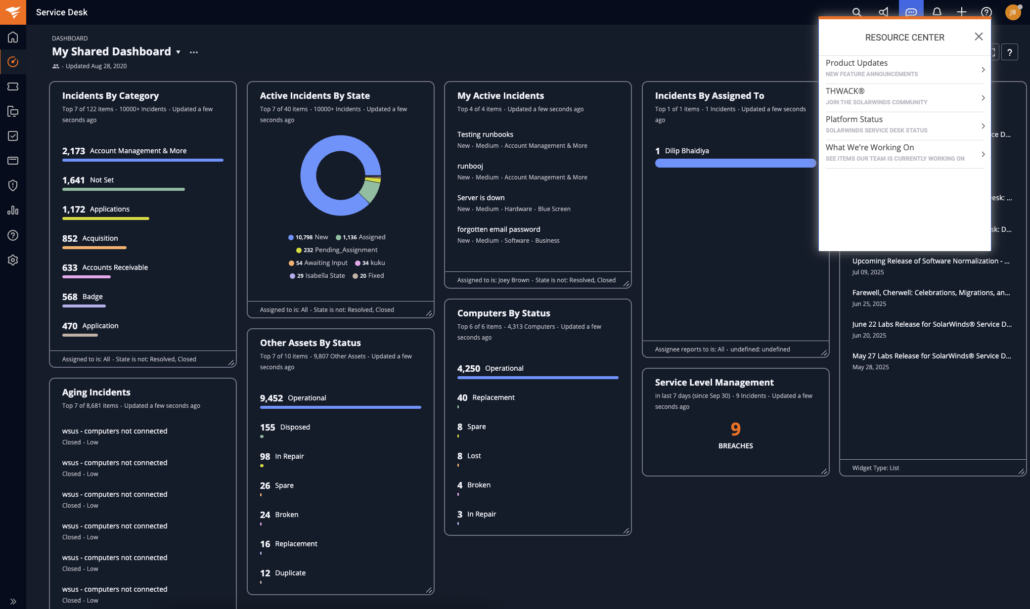 We're excited to roll out another update for SolarWinds Service Desk, packed with improvements designed to enhance your experience and empower your teams. This release introduces a brand-new way to stay connected within the platform, the resource center, and makes our powerful 360 Reports easier than ever to access. Plus, a sneak peek at some changes to the ticket assignment workflow coming later this month. Let’s dive in.