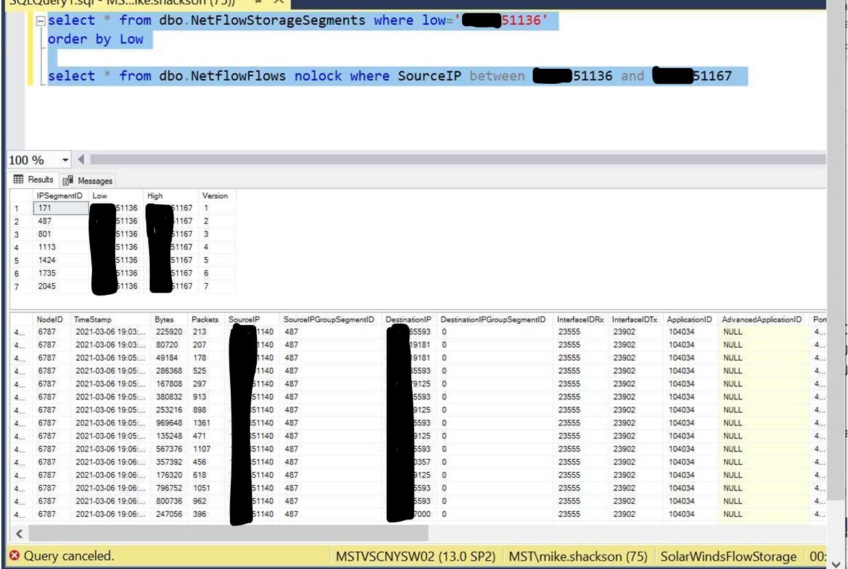 I am attempting to write a swql query for netflow reporting and notice that the SourceIPGroupSegmentID/DestinationIPGroupSegmentID property (from Orion.Netflow.Flows) are all linked to the Orion.Netflow.SourceIPGroup table.