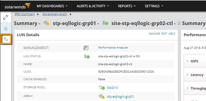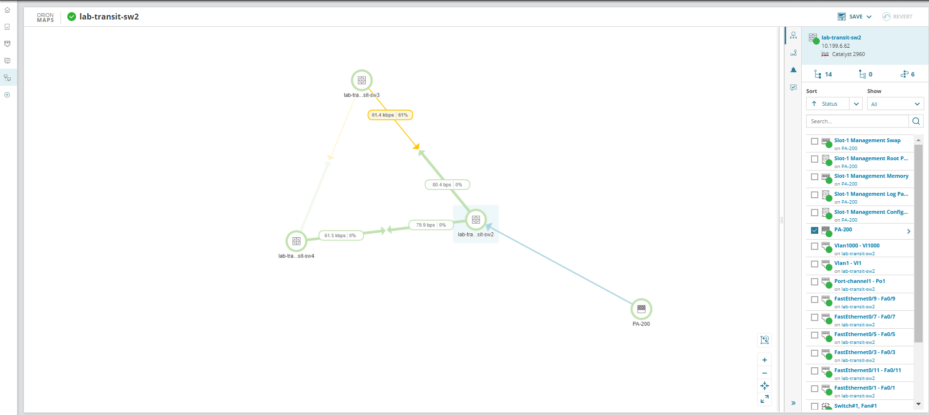 In viewing these examples, you can tell that there are slight differences such as the header containing the "seed device" as well as some more visible changes to the inspector panel which will require further explanation. This is a network example, but as a platform feature the Orion Maps team wants to ensure we lean on the power from all the modules. The updates this time around were focused on benefiting our systems management portfolio of products such as (SAM, VMAN, and SRM). The relationships between these technologies are tightly integrated, and we want to represent those dependencies in a meaningful fashion. As such, some of these enhancements coincide with the latest releases of those modules: SAM 6.7, VMAN 8.3, and SRM 6.7.