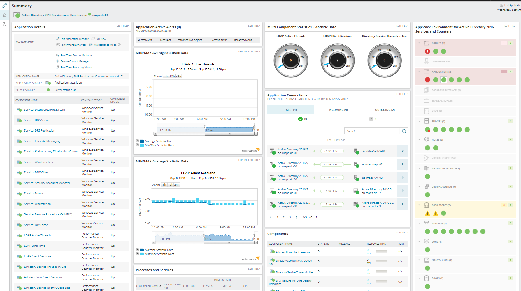 In this scenario, I am the admin responsible for the Active Directory domain for my environment. My goal is to identify and track availability of all the critical components associated to this application. The problem is that I don't really have access to anything beyond the servers I am responsible for. Drilling into the actual application, I am able to see some interesting information.
