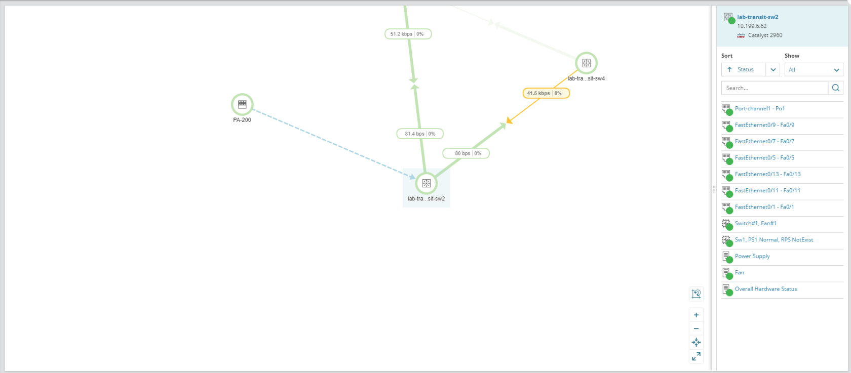 Connected - This particular menu represents a list of entities that are "connected" to the selected entity either via some sort of protocol based relationship or actual data flow. For now, the two options available are topology, or Application Dependency Connections (Monitor application dependencies in SAM - SolarWinds Worldwide, LLC. Help and Support). These are important relationships we felt deserved their own category, and this makes it easy for you to identify those types of linkages between entity types. Below are a couple of examples to show you what this might look like in your environment.