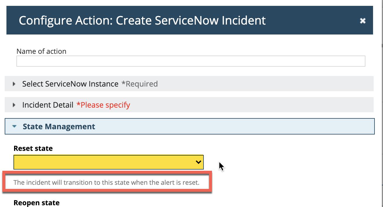 2. No action is configured in RESET Action since we do not want to close ticket automatically (It needs to be closed manually).