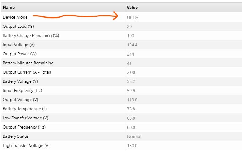 - tlpUpsOutputSource- The current source of the UPS output. "Normal" is the standard/ok value. Other possible values include unknown, other, none, bypass, battery, boosting, reducing, second, and economy.