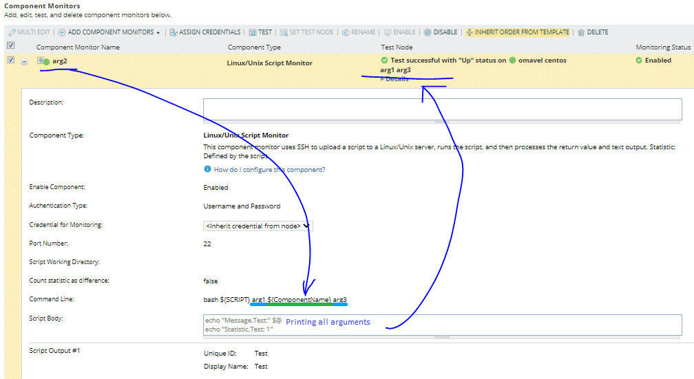 *Note* Use this variable ${Component.Name} directly in your Script body as this is Linux/Unix Script monitor, no need to pass it in Command Line.