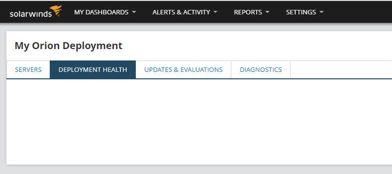 On "My Orion Deployment" page "Deployment health" you are supposed to see alot of test to see Orion is working nice and smooth. But on this installation there is no tests at all. No its not the classic issue that the PAGE is not shown. The issue is that there are no tests.