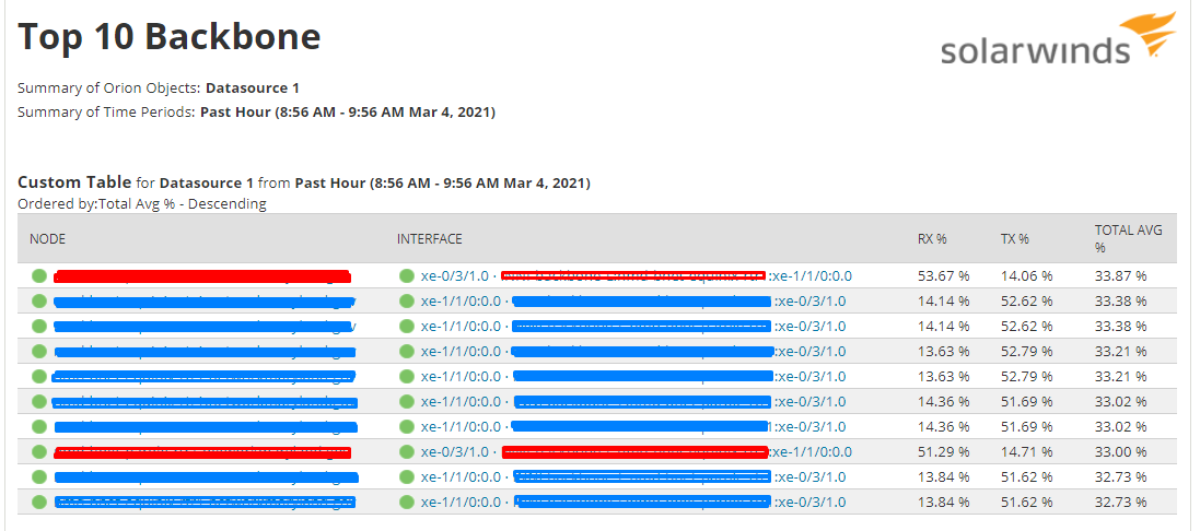 But the report shows duplicates of the same interface. Is its going by top percent like per that timestamp? The Blue/Red lines are all the same router/interface caption.