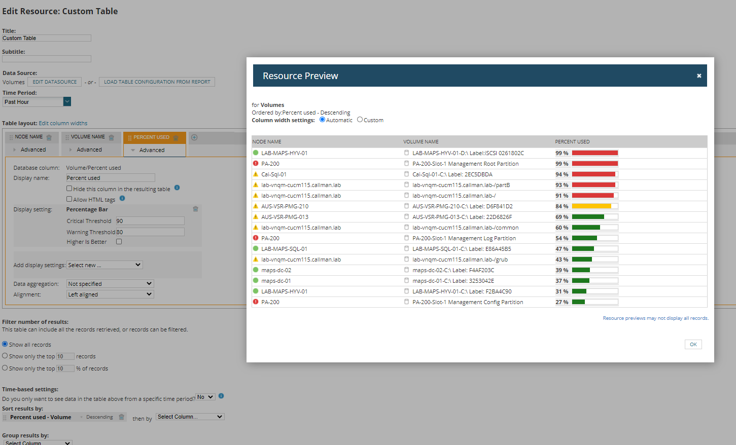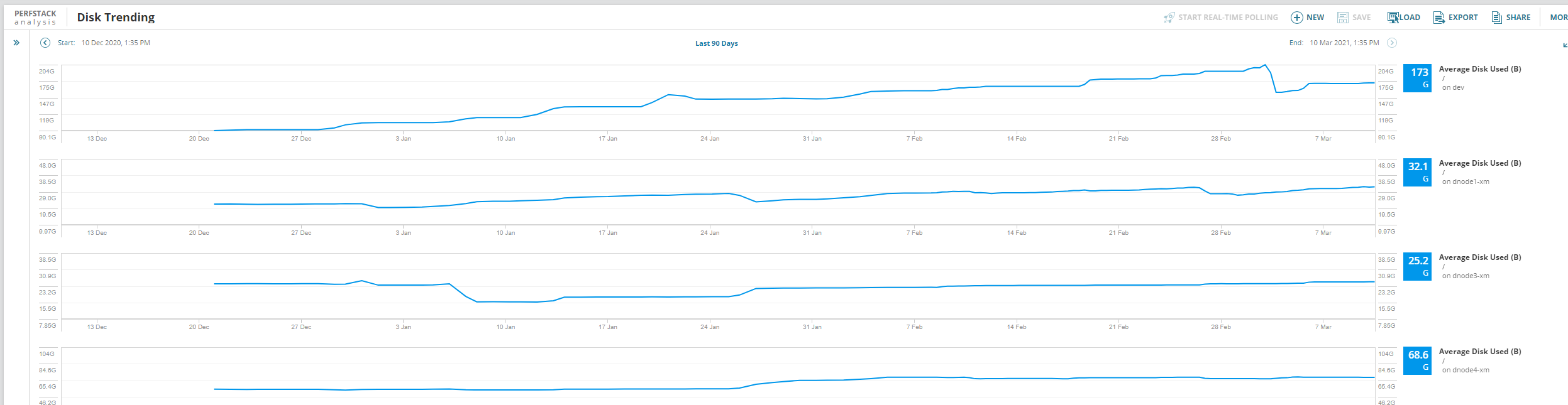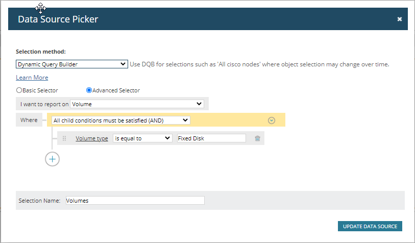 I have been tasked to create a "dashboard" of all of our server volumes space trending. I figured that Perfstack would be the best place to build the report. I went into PerfStack and selected the Volumes option. It looks like it only allows you to add one check box at a time rather than having a Select All button. That was the first problem. The second was once I selected a volume, I wanted to show the Average Disk Space for each volume I had selected in order. It appears that instead of being able to select a metric and then add the volumes to the list so the metric for each is displayed, I have to select a volume, then drag the Average space used widget to the display area. I have over 250 volumes I need to show so trying to do this one by one would be a very time intensive task.