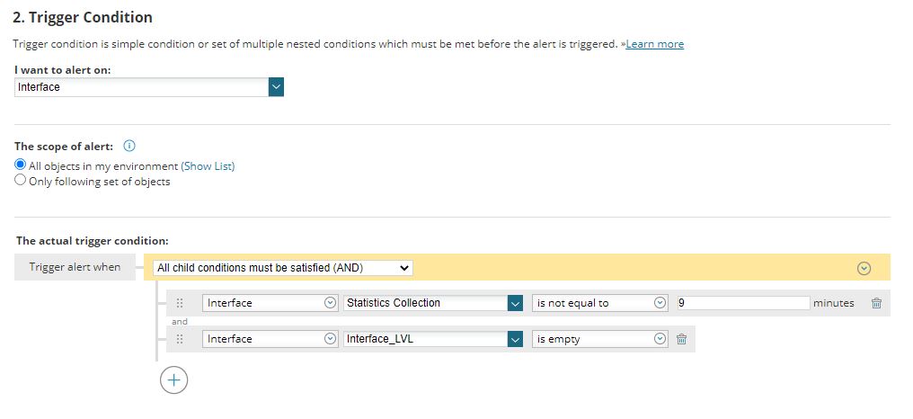 but in the trigger actions, I can't find any way to change the interface statistics collection.