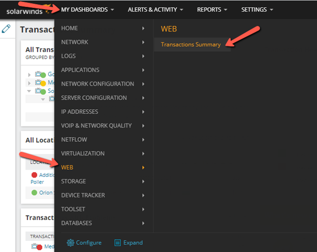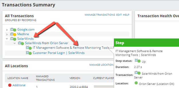 Once on the summary page pick any Transaction and expand to view the steps, then select any of the steps below it.