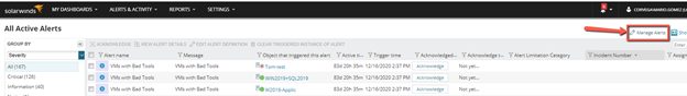 From the All Active Alerts view select Manage Alerts option in the upper right corner.