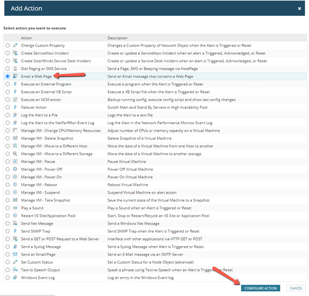 Within the Add Actions view select Email a Web Page and then click Configure Action.