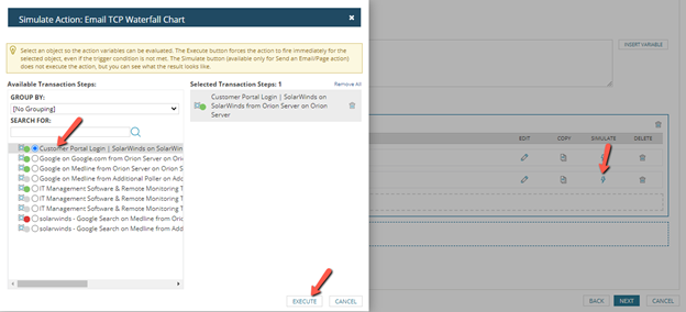 Complete the rest of the setup and if you wish to test it click Simulate, choose an available Transaction step and click the Execute button.