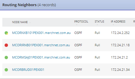 We have 3 sites that are satellite sites that we monitor via reporting on the status of OSPF in Routing Neighbors.