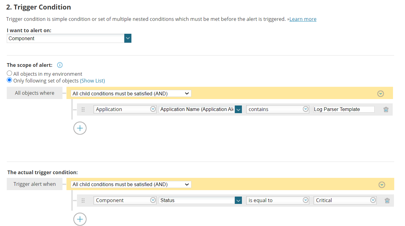 Need someone help on how i can make an email alert out of the Log Parser template. Currently, i can already make the log parser work. It detected the needed keyword i need. However, when i try to make an alert out of it, i can't find anything related in the "trigger condition' section.