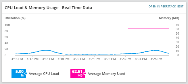 You may notice on your Vital Stats subview that there is a real-time polling widget for CPU and Memory. It shows CPU as a Percentage and Memory as a number (bytes consumed).