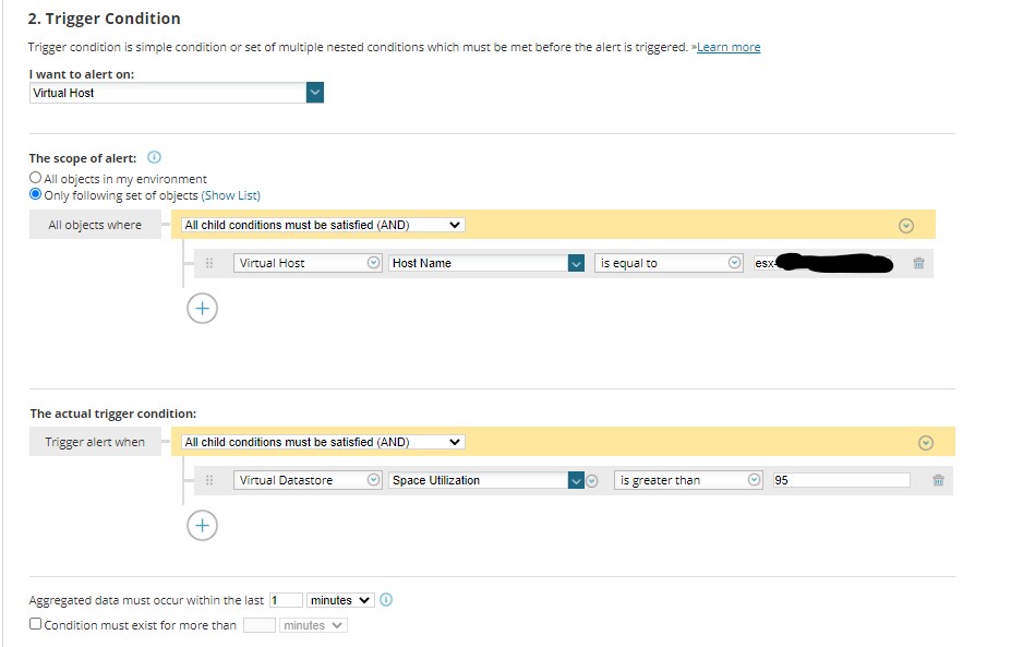 Hello! I Have a little question about alerting. I want to set alert on my ESX host when my Virtual Datastore is low space like this, my condition is absolutely right, but I see what alert should not be triggered.
