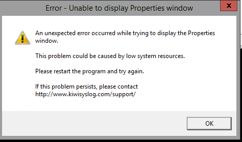 I bought Kiwi Syslog today and I've installed and licensed it, but when I go into the File/Setup menu to configure it, I get: