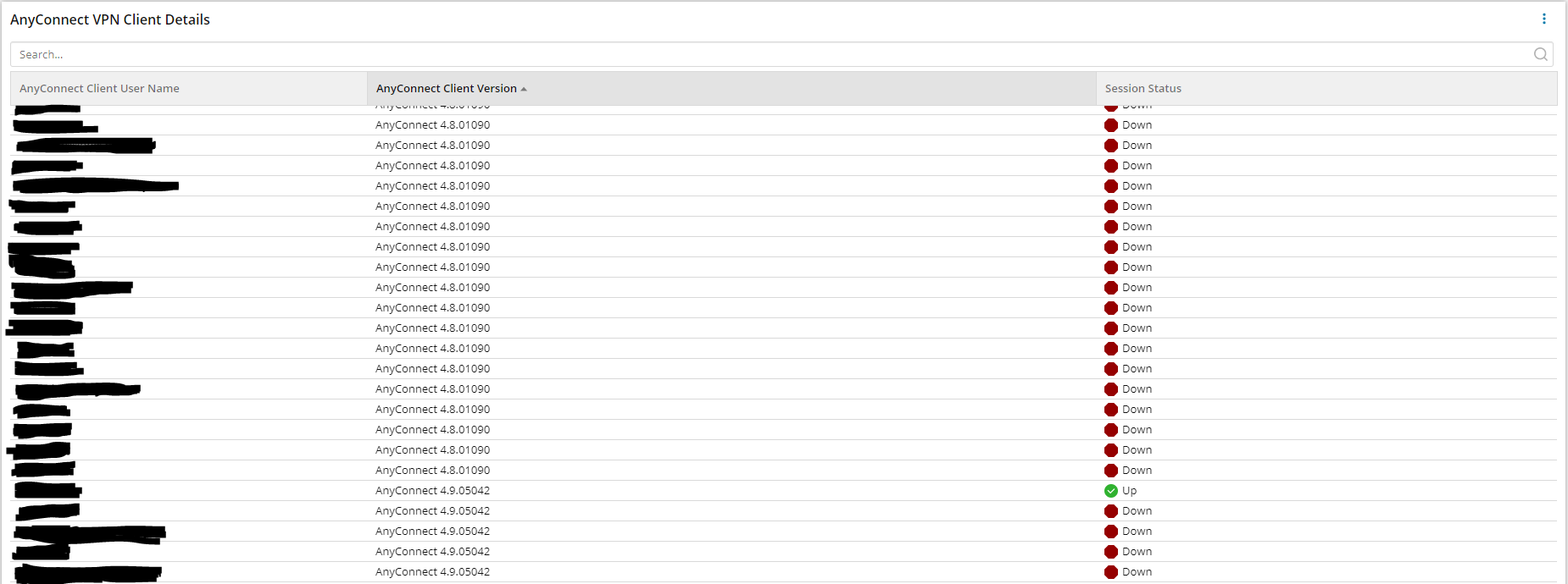 I am having difficulties trying to get a pie or donut chart created with data that shows the total number of AnyConnect VPN clients on specific AnyConnect Client versions. If anyone has a good SWQL query that can pull this type of data I would appreciate it. I tried using the graphical query builder and could not figure out a way to get a value for VPN RA Session ClientInfo, Thanks!